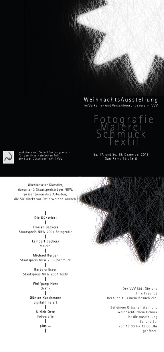 2006 Unter dem Titel „Word into Art" zeigt der VVV eine Ausstellung der Kalligraphin Alexandra Remmes. Die Schauspielerin Mirjam Wiesemann liest zur Eröffnungen aus dem Buch „Das Muster" von Dieter Forte, Zur Finissage liest die Kunstkritikerin und Journalistin Dr. Helga Meister aus ihrem Buch „Piene, Uecker, Mack" und eröffnet damit die Serie „Journalisten lesen im VVV".